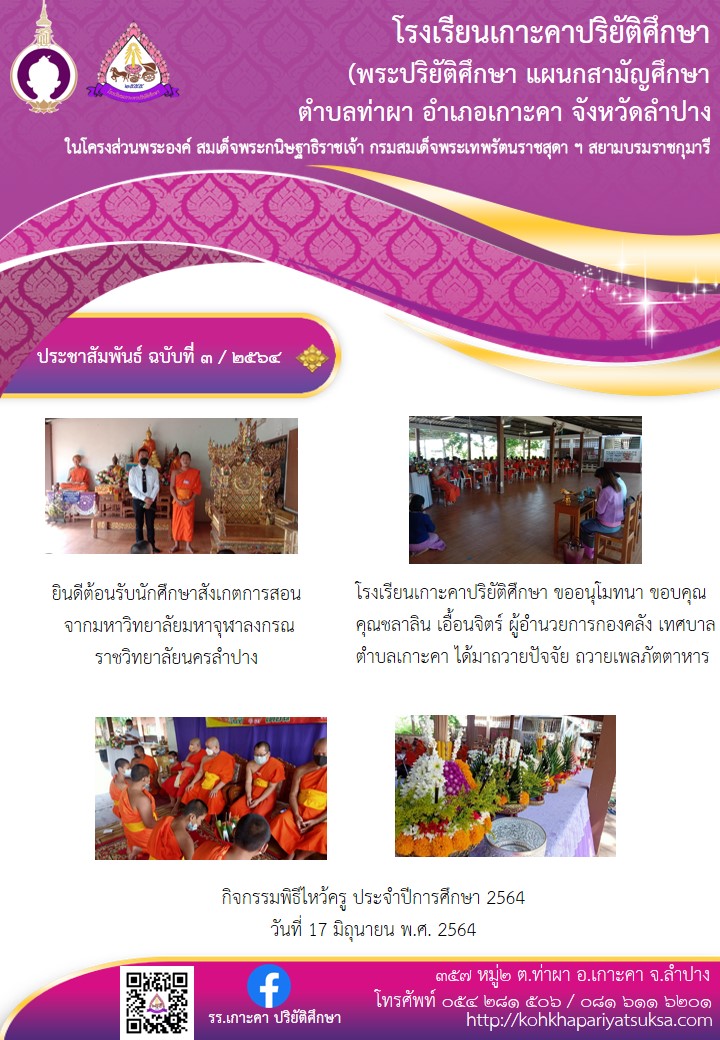 ประชาสัมพันธ์ฉบับที่ ๓/๒๕๖๔