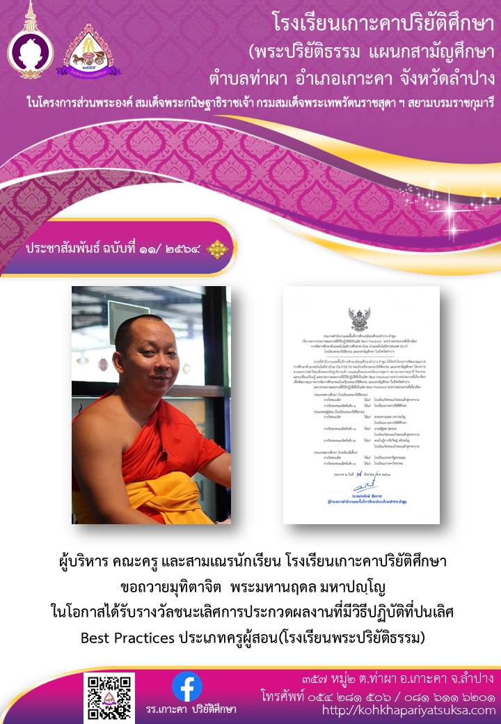 ประชาสัมพันธ์ฉบับที่ ๑๑/๒๕๖๔